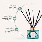 Creates a captivating atmosphere, blending fresh exotic fruits with warm woods to transform your home into a magical haven.