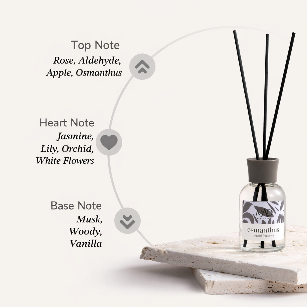 Transform your space into a serene and refreshing haven with Mad Osmanthus Room Fragrance. Inspired by the graceful allure of blooming flowers and crisp fruits, this scent brings a sense of calm and beauty to any environment.