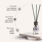 A Refreshing and Uplifting OpeningThe fragrance welcomes you with a bright blend of Rose, Apple, and the distinctive sweetness of Osmanthus. This harmonious opening creates an inviting and vibrant atmosphere.